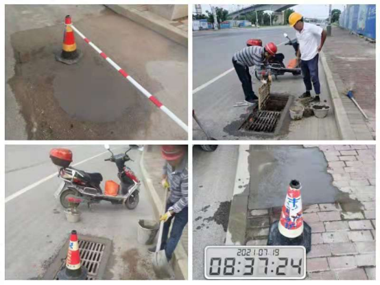 7月18日至19日,新区市政园林处对唐英大道破损井圈处进行维修,对唐英小公园树木扶正加固,继续加强市容整理,规范非机动车停放;并针对督办单提出的问题,对迎宾路损坏、破损、下沉的人行道、雨水井进行维修,确保新区园林环境整治工作取得显著成效。